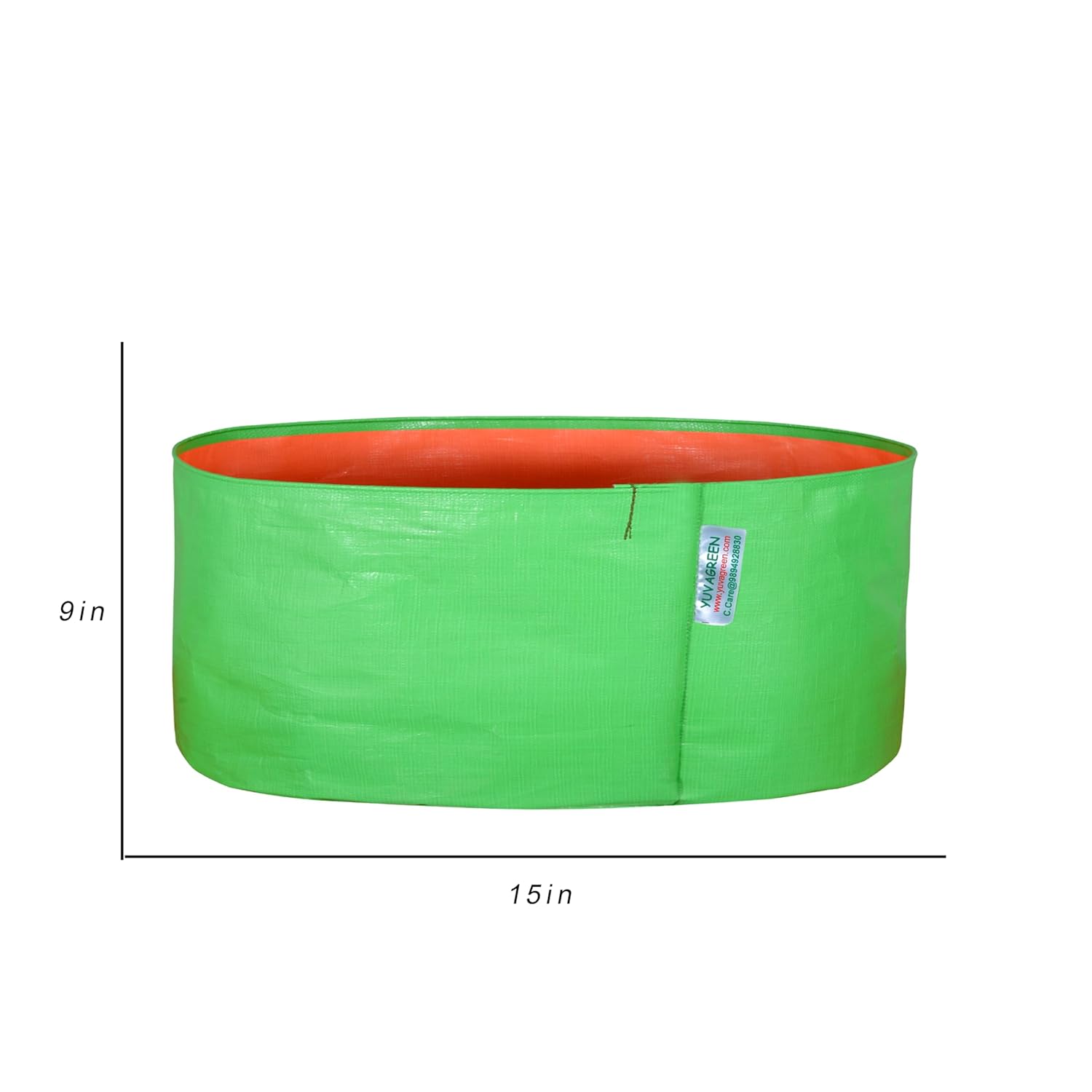 YUVAGREEN Green with Orange 200 GSM UV Treated Grow Bags for Terrace Gardening 15″x9″ Pack of 4