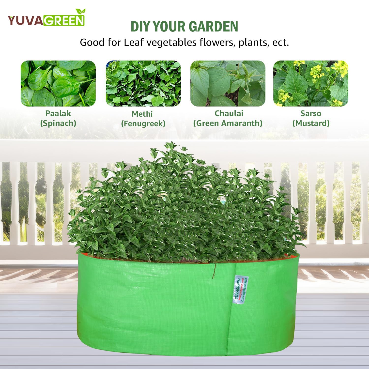YUVAGREEN Grow Bags for Terrace Garden, Premium HDPE Green Plant Bag (6″ X 6″) – (Pack of 4)